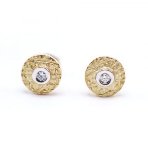 Pendientes BOTON de Oro Bicolor y Diamantes
