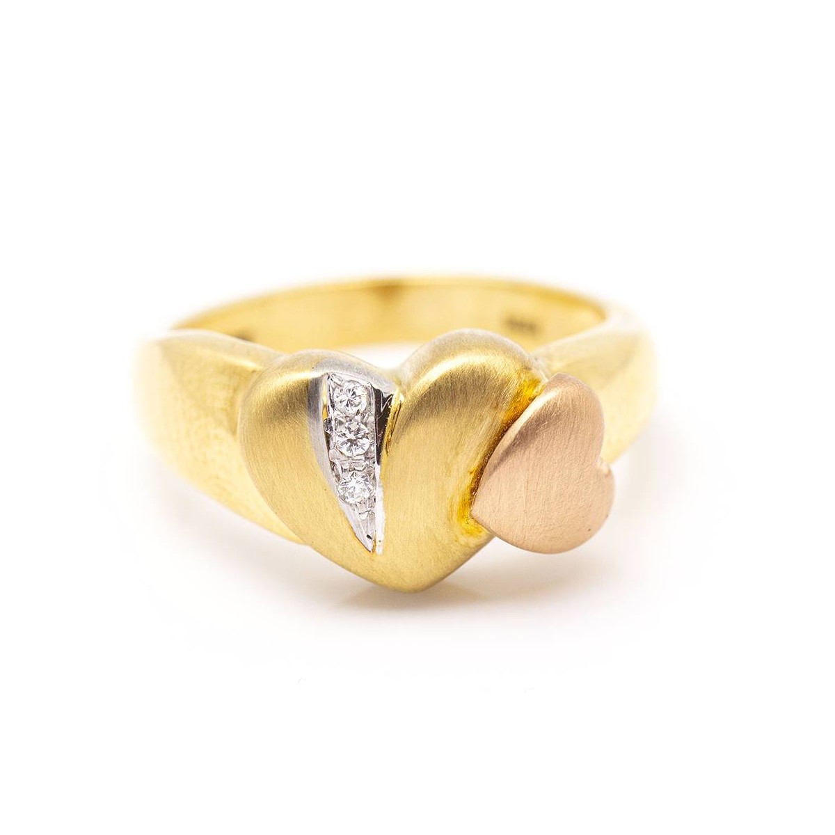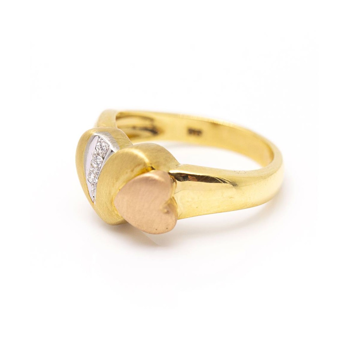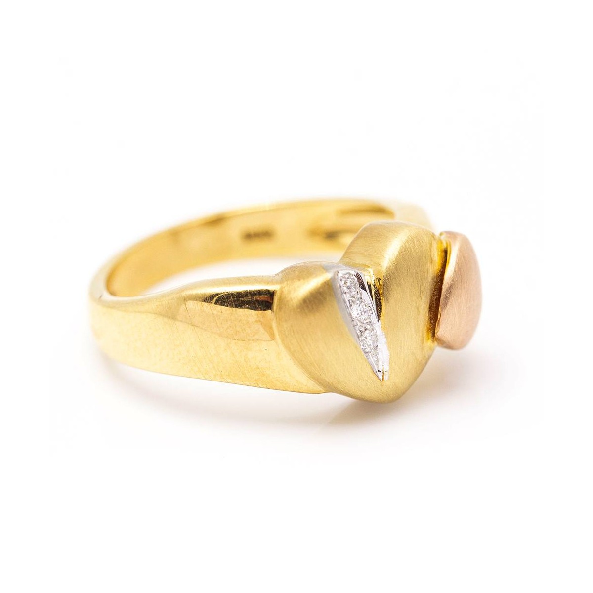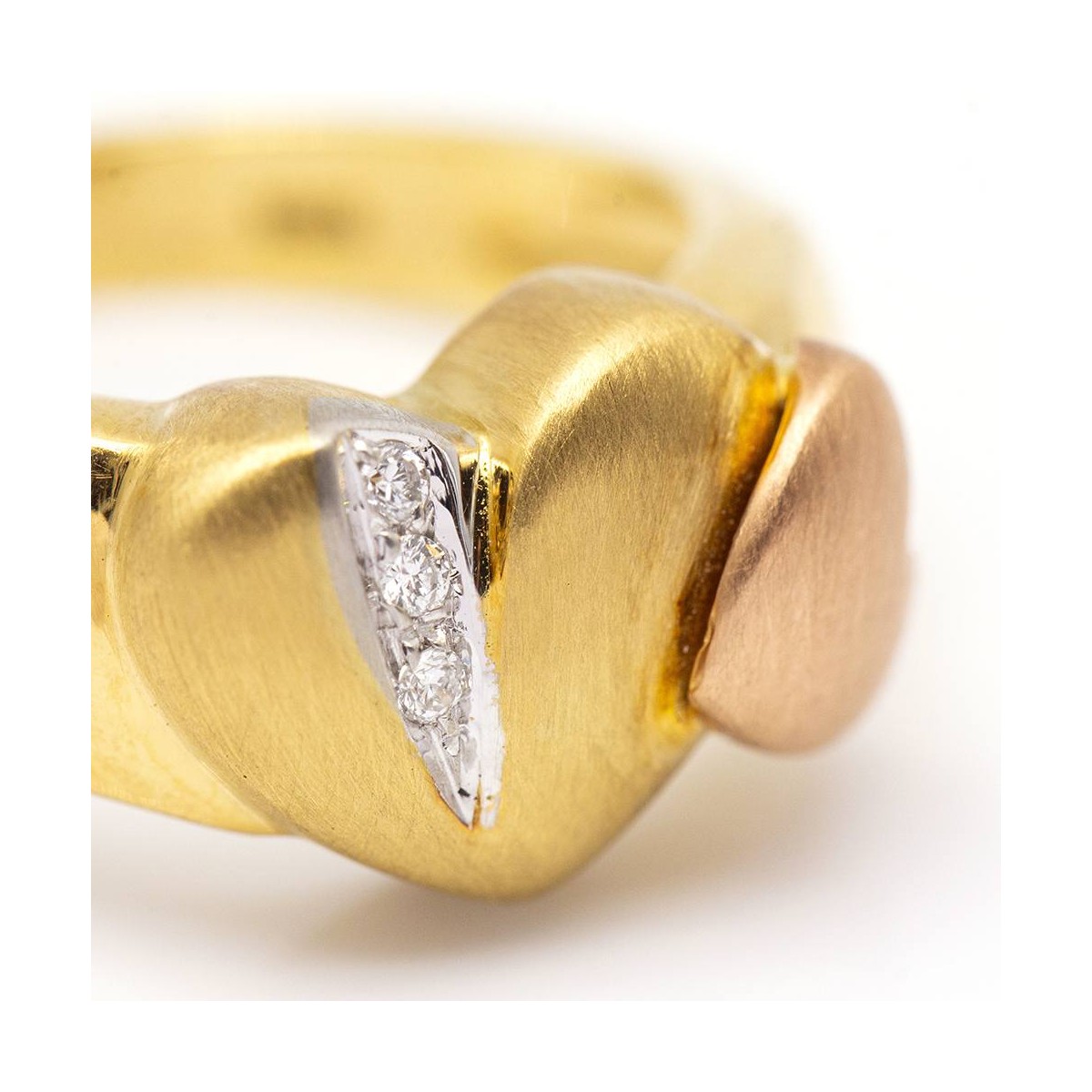 Anillo en Oro con Diamantes para mujer | 3x Diamantes en talla Brillante con peso total aprox. de 0,03ct en calidad H/VS | Talla 15, se puede adaptar a otras medidas (consultar presupuesto) | Oro Amarillo, Oro Rosa y Oro Blanco 18 kt. | 6,38 gramos. | Este anillo se encuentra en excelente estado de conservación, sin ningún desgaste de uso visible.