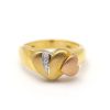 Anillo en Oro con Diamantes para mujer | 3x Diamantes en talla Brillante con peso total aprox. de 0,03ct en calidad H/VS | Talla 15, se puede adaptar a otras medidas (consultar presupuesto) | Oro Amarillo, Oro Rosa y Oro Blanco 18 kt. | 6,38 gramos. | Este anillo se encuentra en excelente estado de conservación, sin ningún desgaste de uso visible.