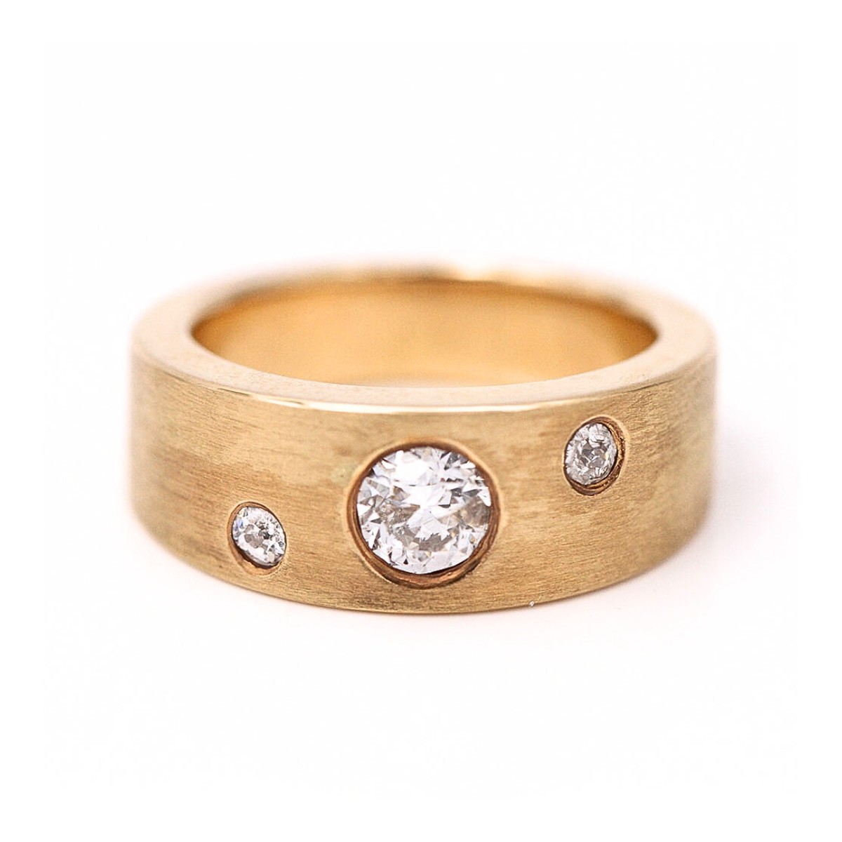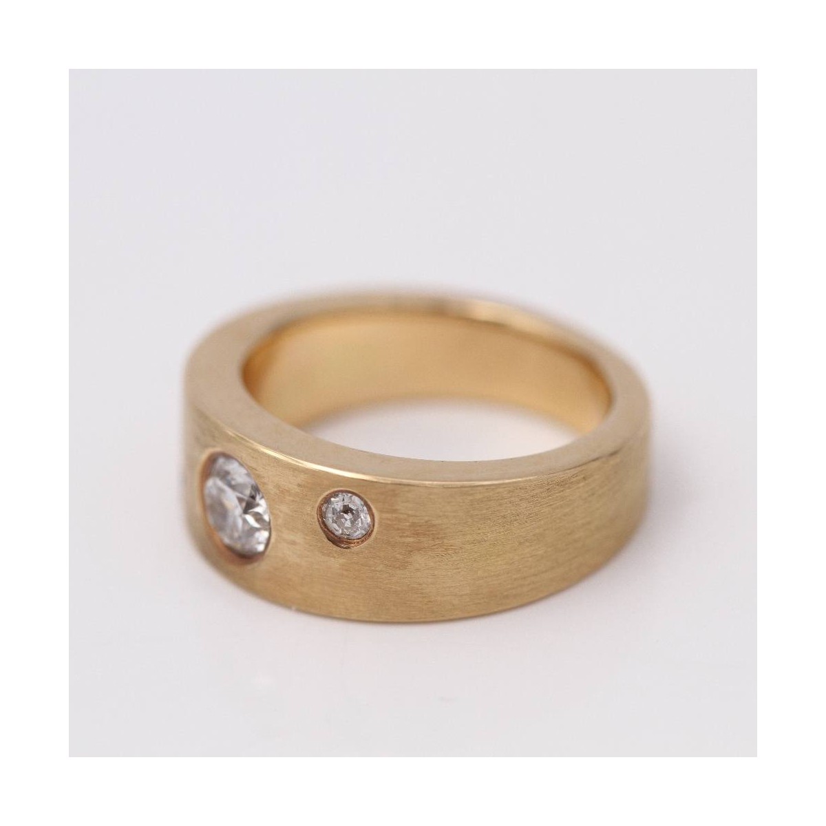 Anillo de Autor J.Cayellas en Oro Amarillo unisex | 1x Diamante en talla Brillante con peso aproximado de 0,55 cts. en calidad G/VS y 2x Diamantes en talla Brillante con peso aproximado de 0,07 cts., en calidad G/VS | Oro Amarillo 18 kt. | 11,84 gramos. | Talla 15, se puede adaptar a otras medidas (consultar presupuesto). | Ref :UKD359554JC