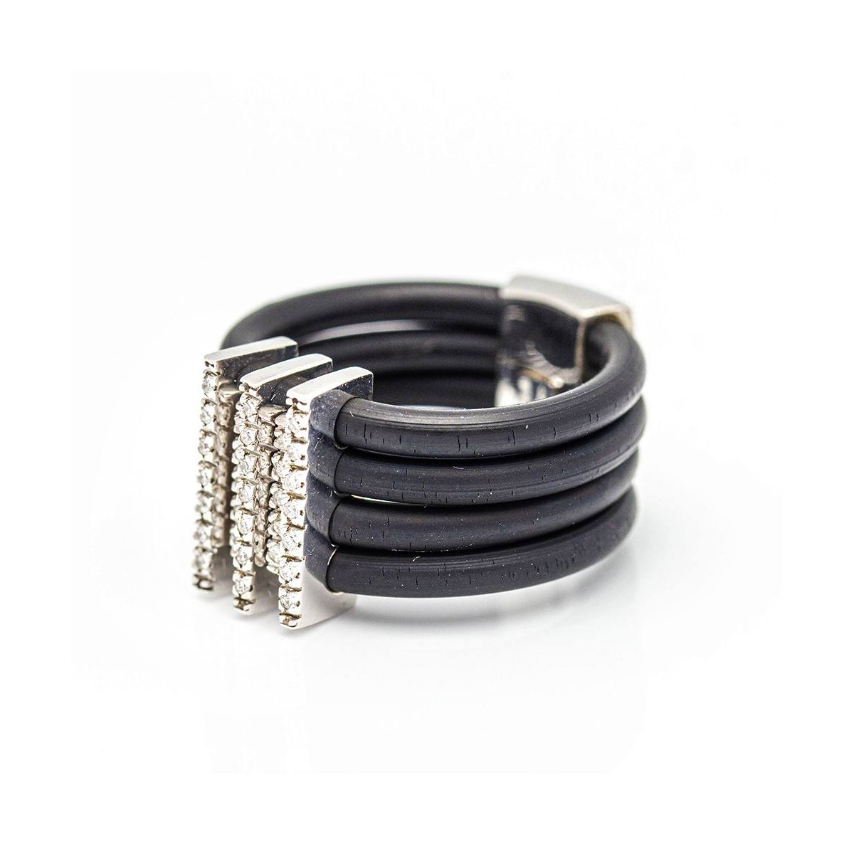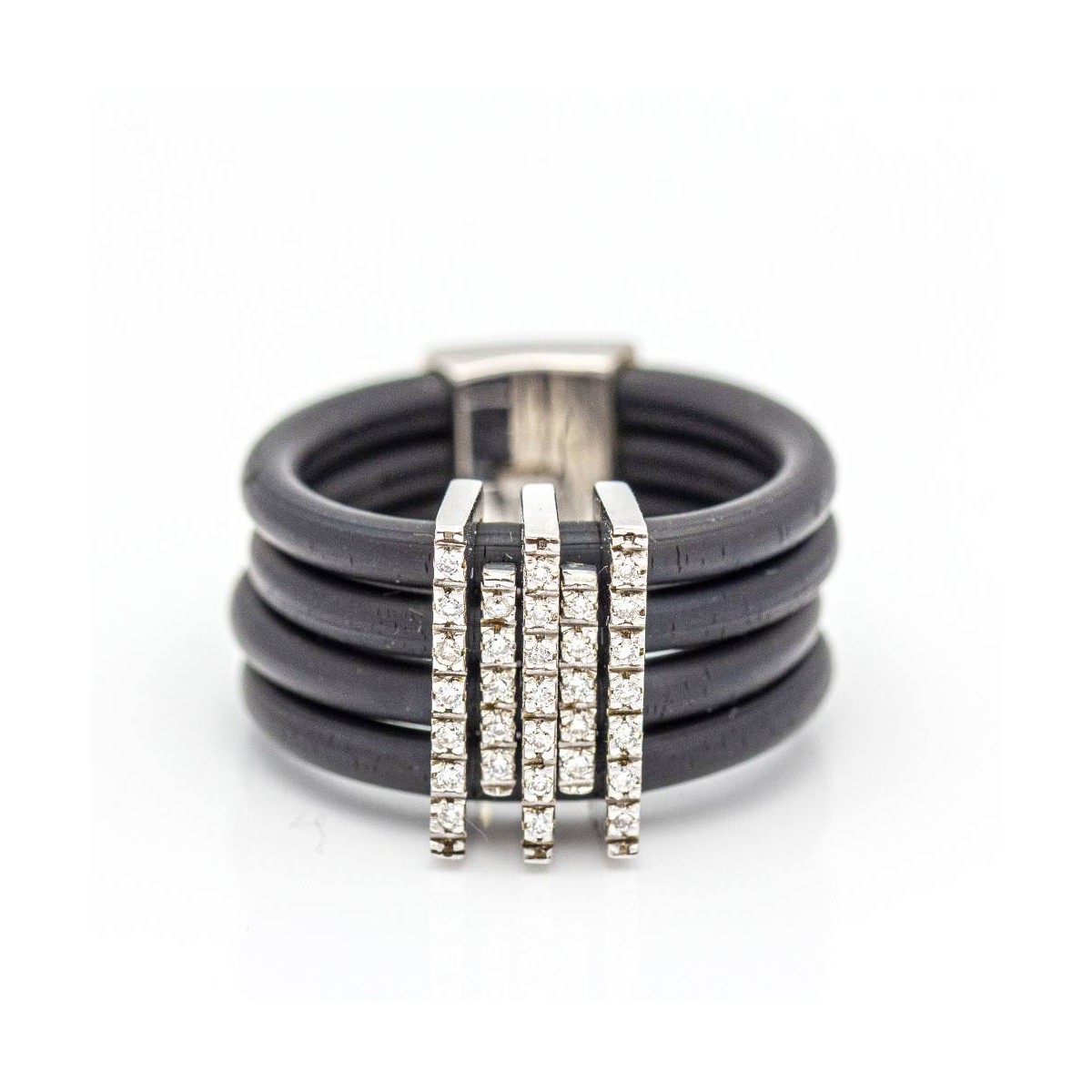Anillo en Oro y Caucho para mujer | 32x Diamantes en talla Brillante con peso total aprox. de 0,17ct en calidad G/VS | Elástico desde Talla 16 a Talla 19 | Oro Blanco 18 kt. | 6,20 gramos. | Producto nuevo a estrenar solo disponible en la web. Ref : UKD359663LF