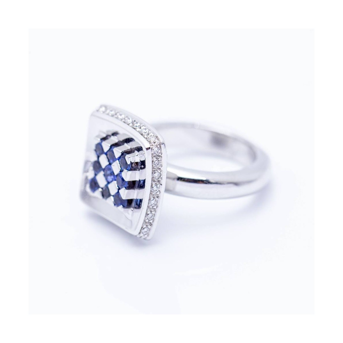 Anillo de Oro en forma cuadrada | Diamantes en talla Brillante con peso total 0,56cts. en calidad G/VS | Zafiros con peso total 0,45cts. | Talla 12, se puede adaptar la medida (Consultar presupuesto) | Oro Blanco 18 kt. | 13,90 gramos. | Producto nuevo a estrenar solo disponible en la web.