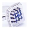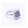 Anillo de Oro en forma cuadrada | Diamantes en talla Brillante con peso total 0,56cts. en calidad G/VS | Zafiros con peso total 0,45cts. | Talla 12, se puede adaptar la medida (Consultar presupuesto) | Oro Blanco 18 kt. | 13,90 gramos. | Producto nuevo a estrenar solo disponible en la web.