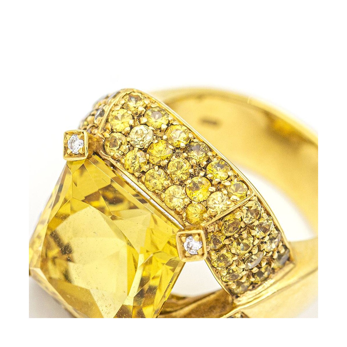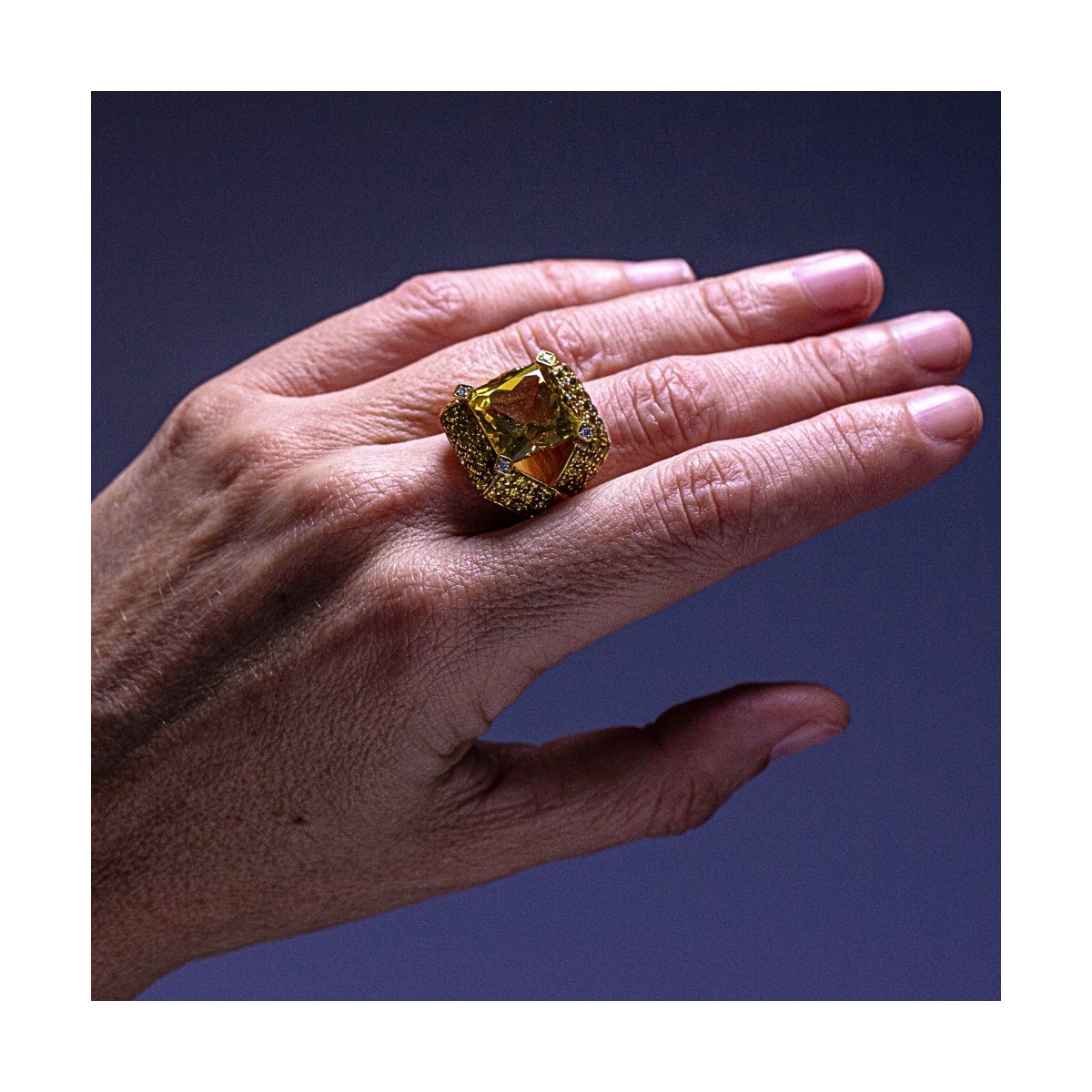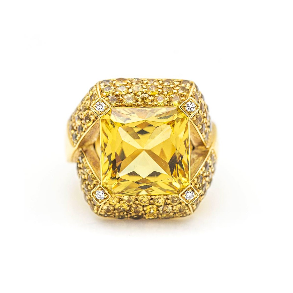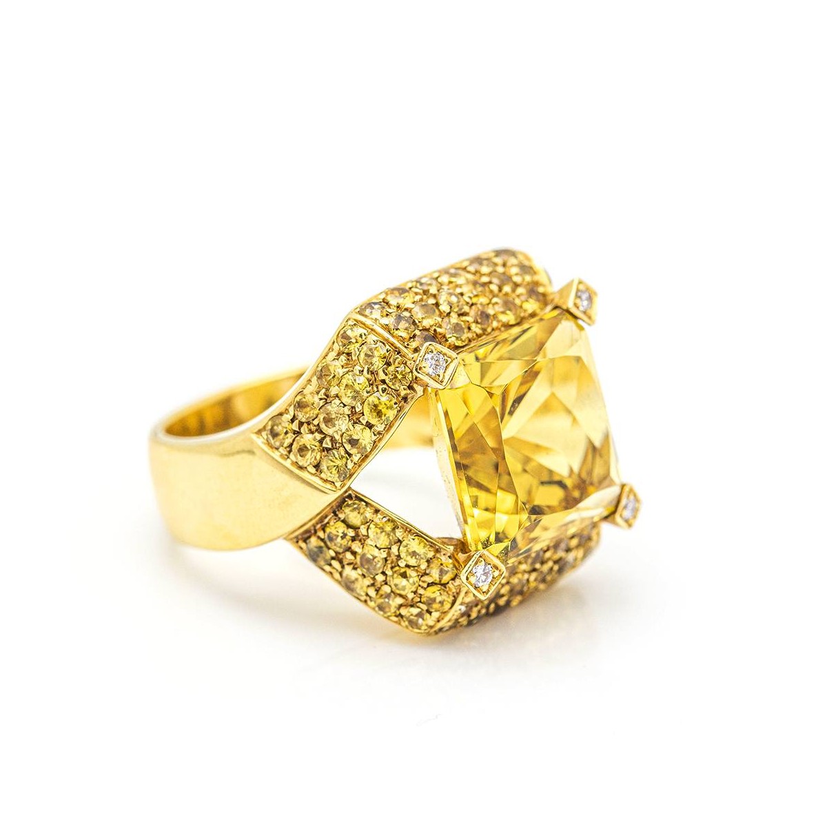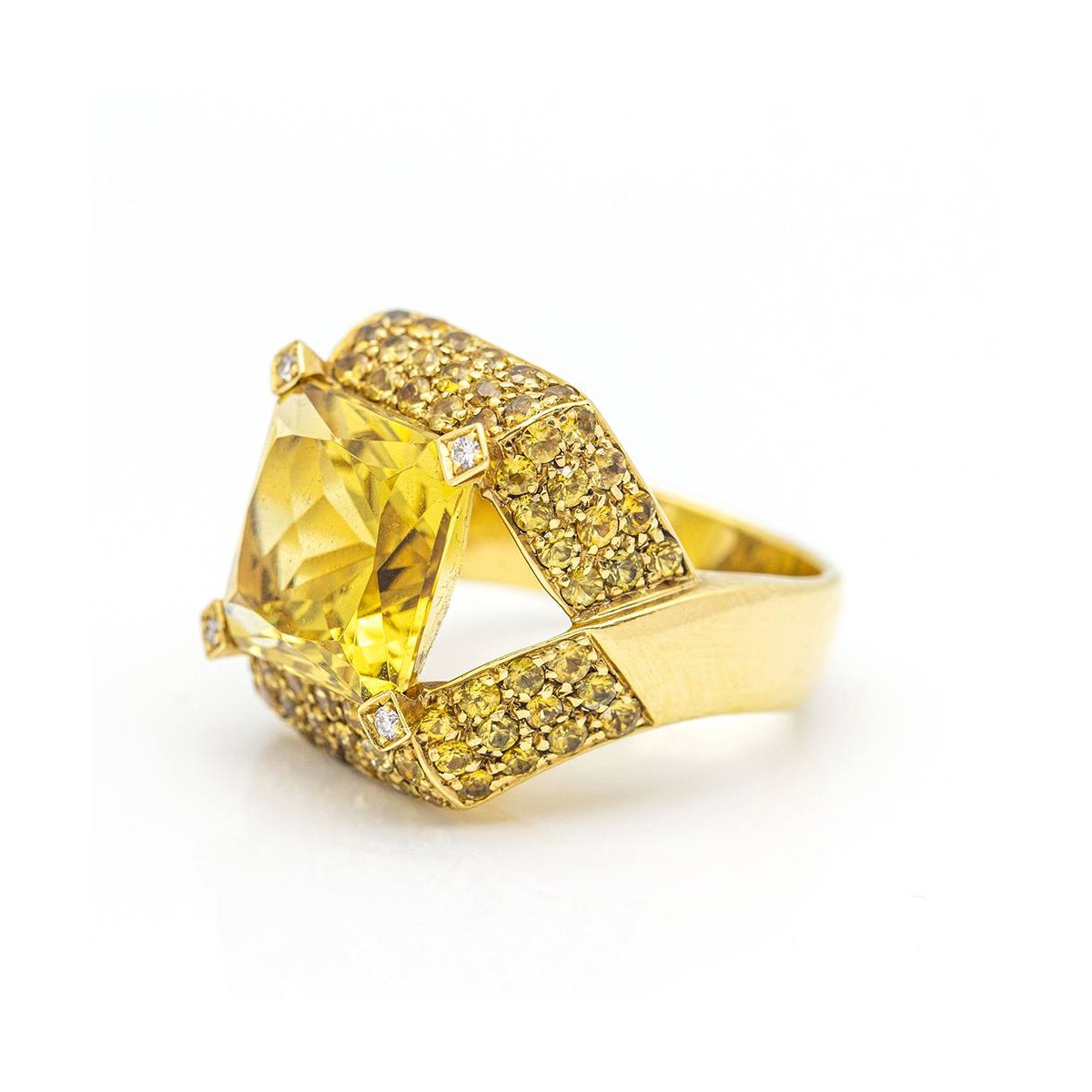 Espectacular Anillo de Oro Amarillo y Zafiros para mujer | 4x Diamantes en talla Brillante con peso total de 0,07 cts., en calidad G/VS | 83x Zafiros amarillos de Myanmar con un peso total de 14,65 | Oro Blanco 18 kt. | 21,56 gramos | Talla 15,5 se puede adaptar a otras medidas (consultar presupuesto) | Producto nuevo a estrenar solo disponible en la web .Ref.: UKD359730LF