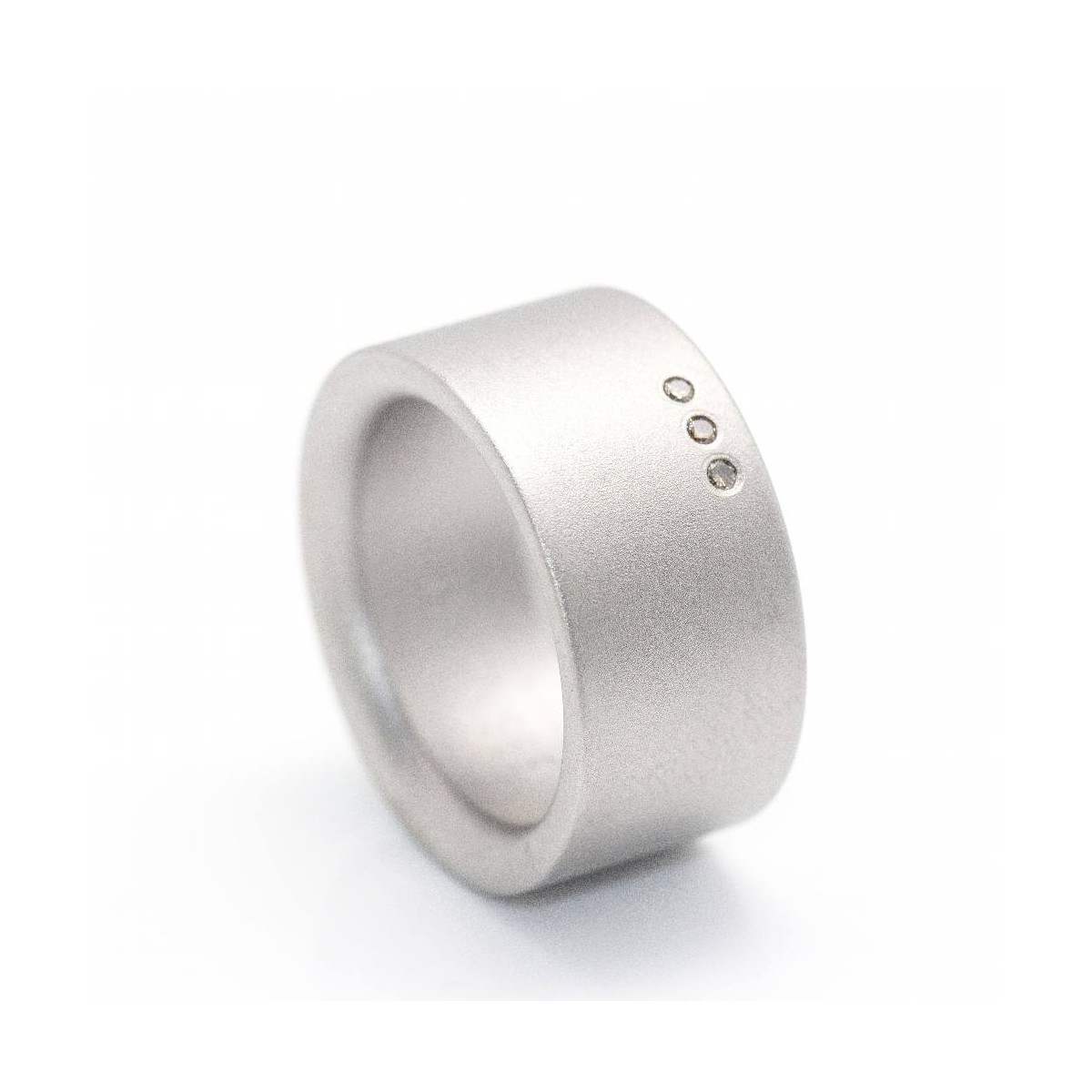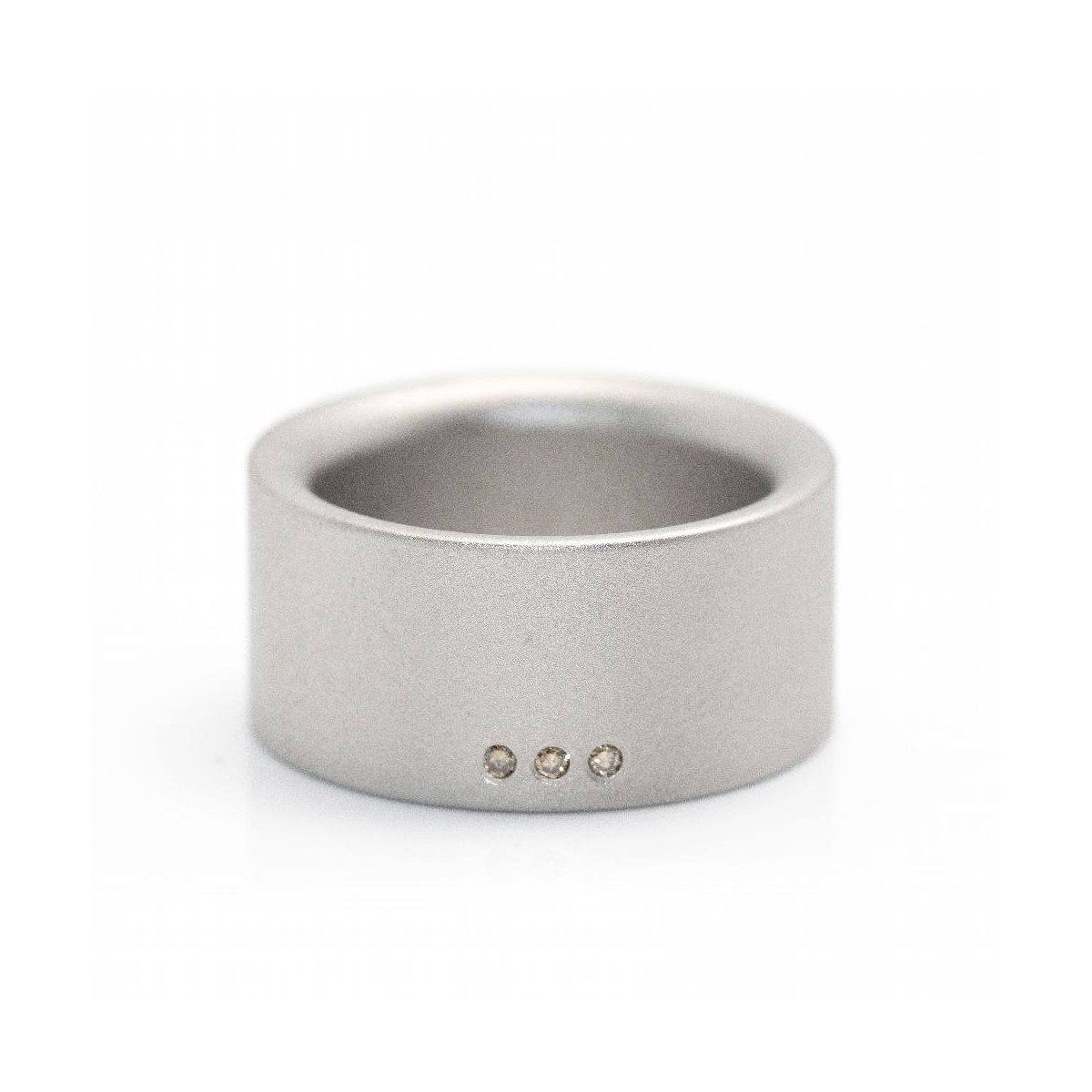 Anillo NIESSING de Acero arenado para mujer | 3x Diamantes en talla Brillante color Champagne con peso total de 0,03cts l Talla 13, este anillo no se puede modificar de tamaño l Medidas: Ancho 10mm | Aleación especial de Acero arenado | 11,90 gramos | Articulo nuevo a estrenar solo disponible en la web .