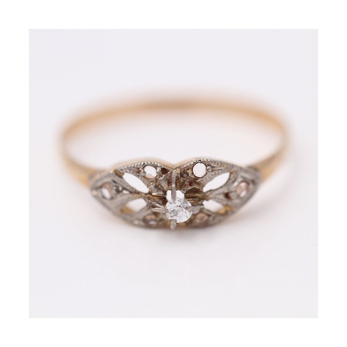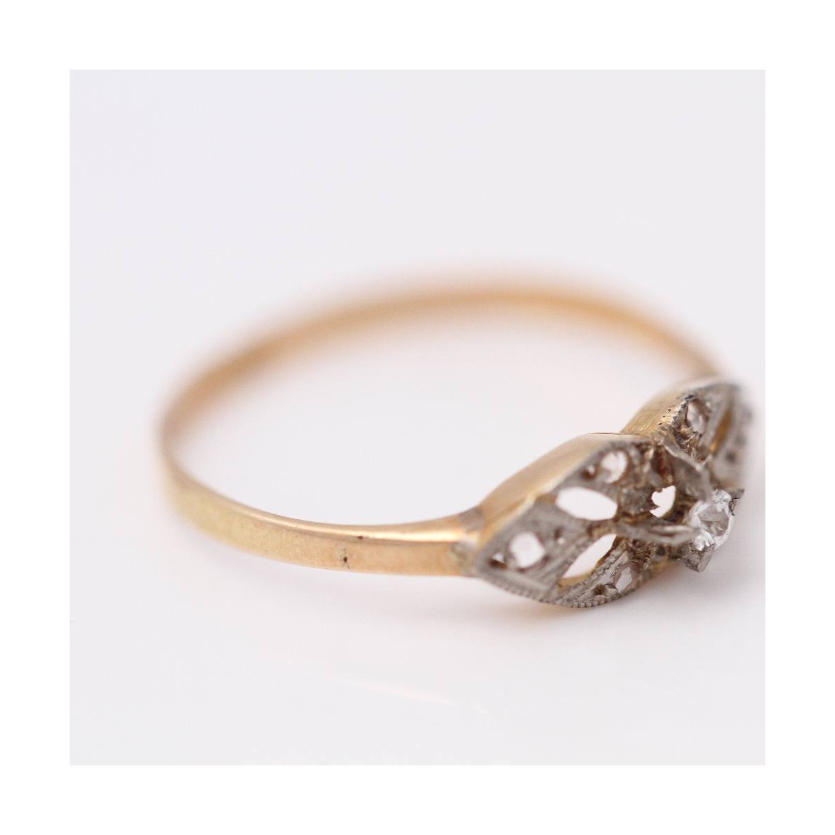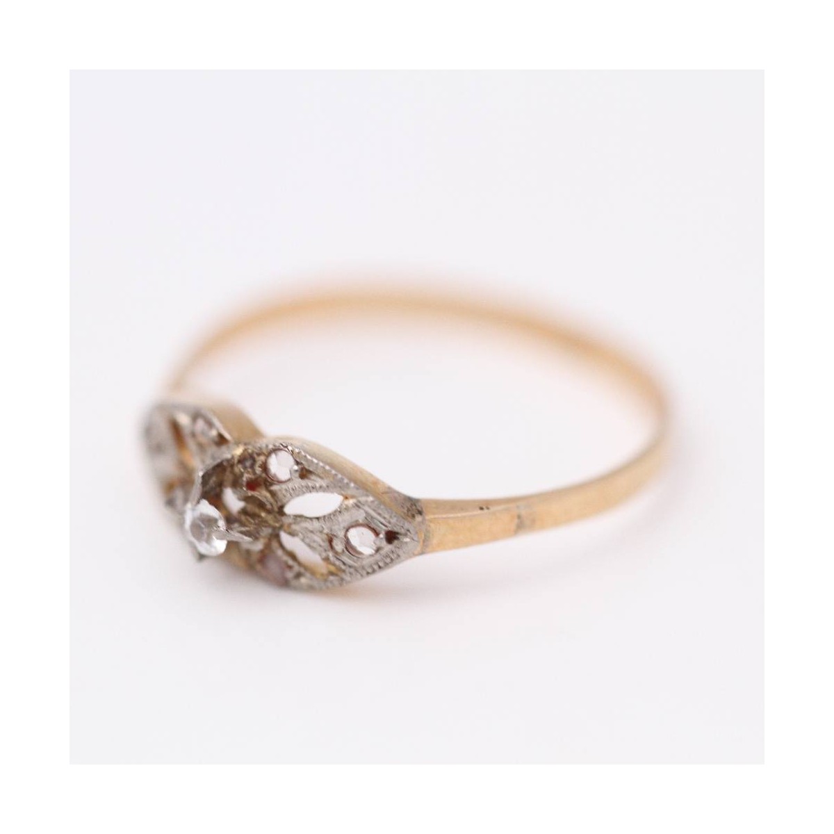 Anillo Belle Époque 1920 para niña o mujer | 7x Diamantes en talla antigua con un peso aprox. 0,04cts. | Talla 6, se puede adaptar a otras medidas (consultar presupuesto) | Oro Amarillo 18 kt. y Platino 950 | 0,70 gramos. | Producto original antiguo de segunda mano. Ref :UKD359565JC