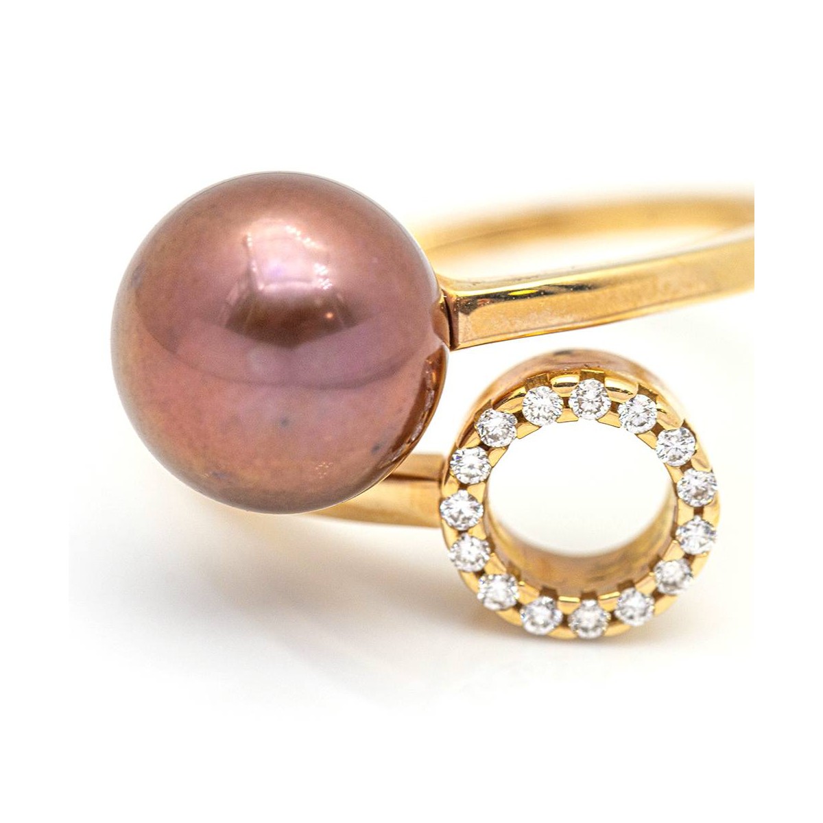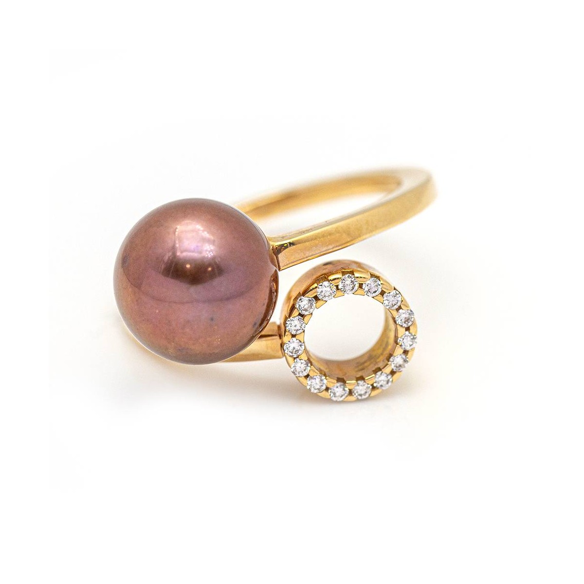 Anillo de Oro Rosa con Diamantes y Perlas para mujer | 15x Diamantes en talla Brillante con peso total de 0,12ct en calidad G/VS | 1x Perla Australiana natural de 10mm. en coloración chocolate | Talla 15, se puede adaptar a otras medidas (consultar presupuesto) | Oro Rosa 18 kt. | 5,30 gramos | Producto nuevo a estrenar solo disponible en la web . Ref : UKD359699LF