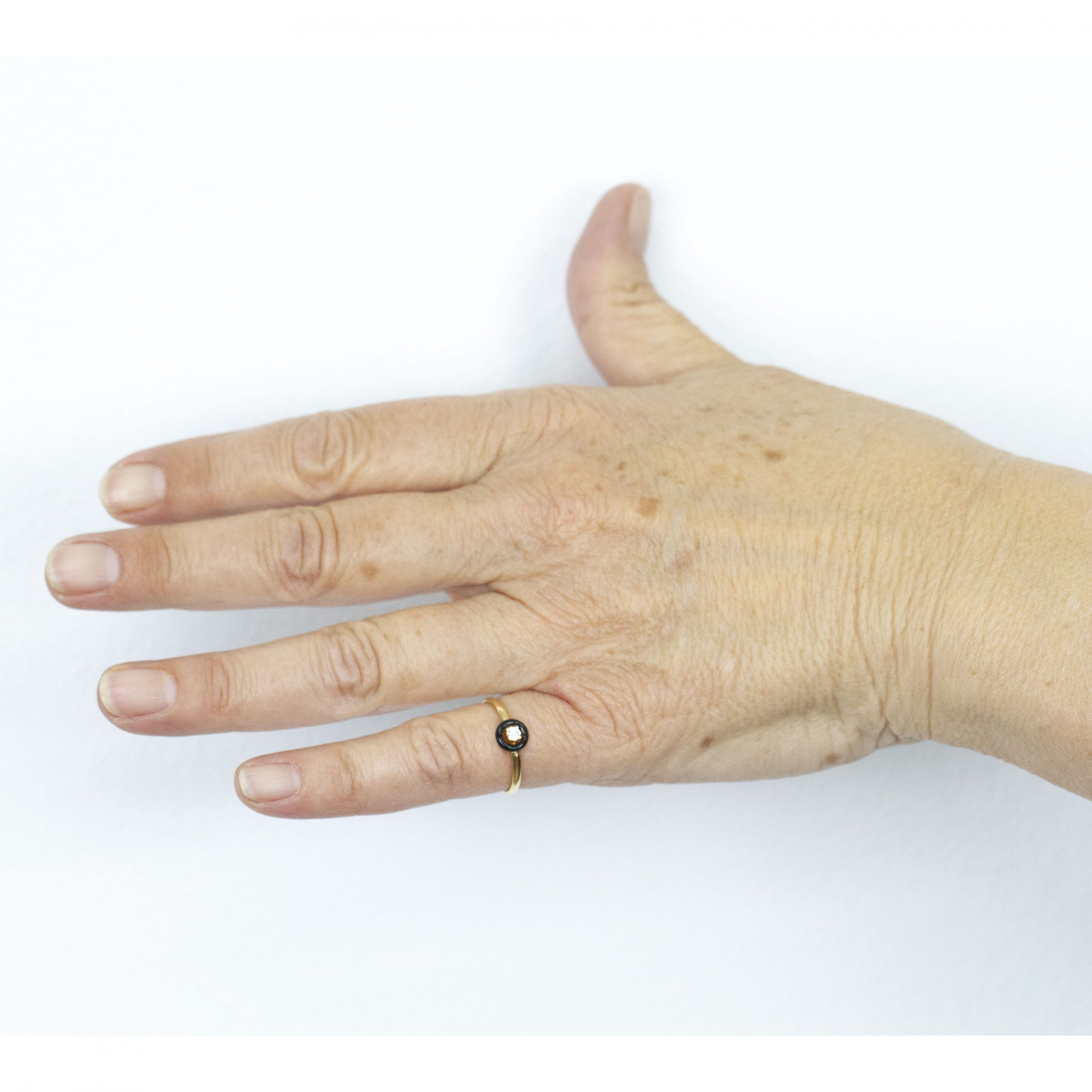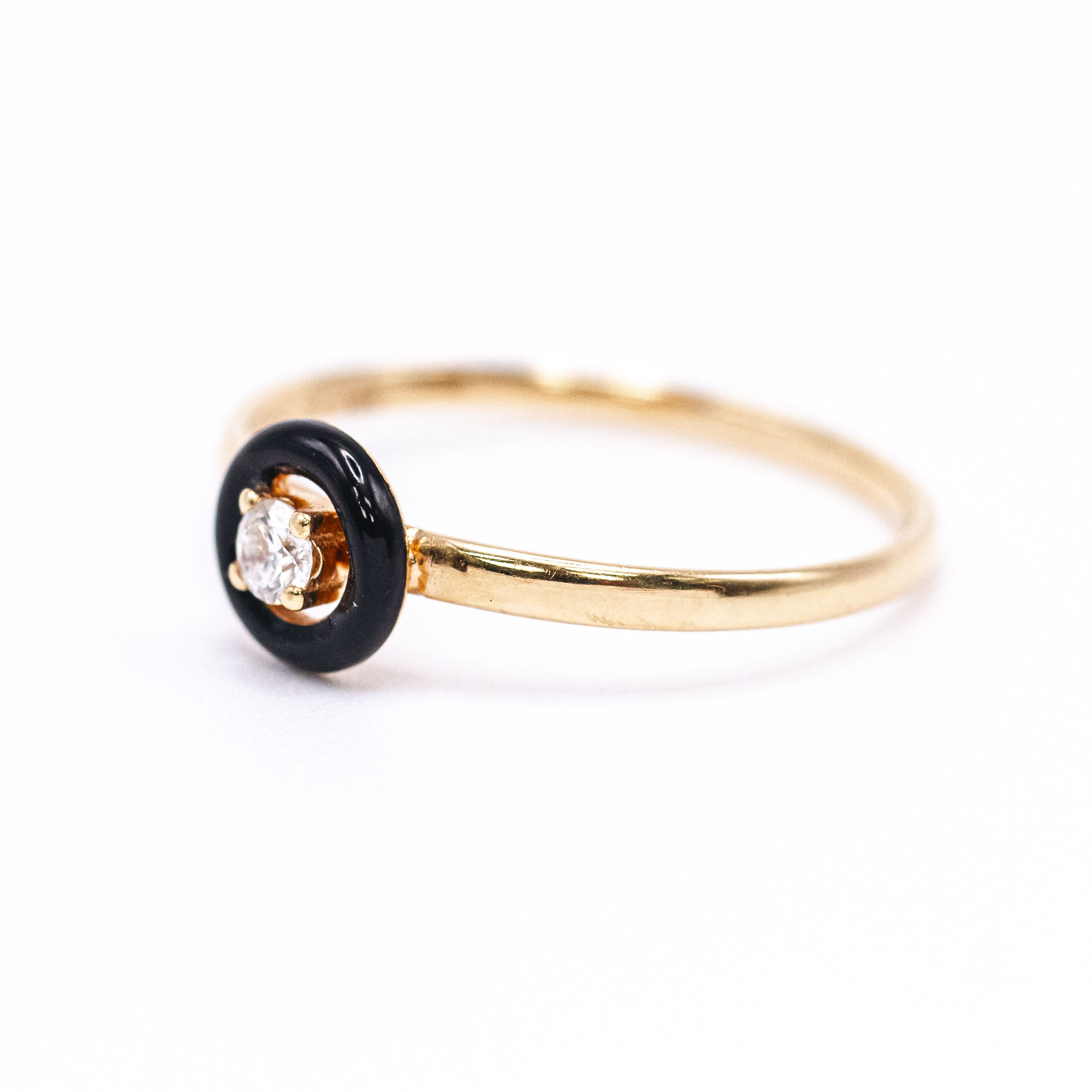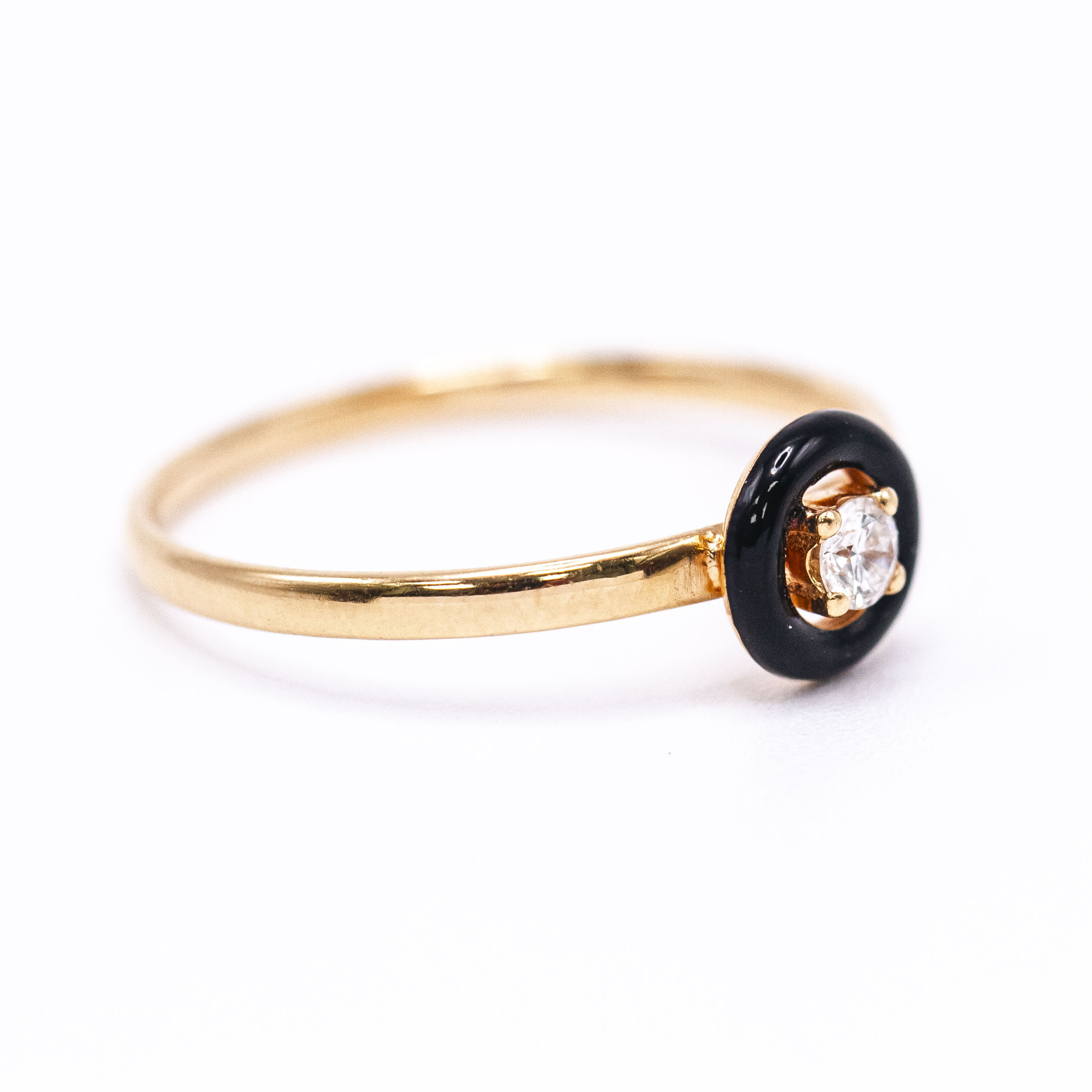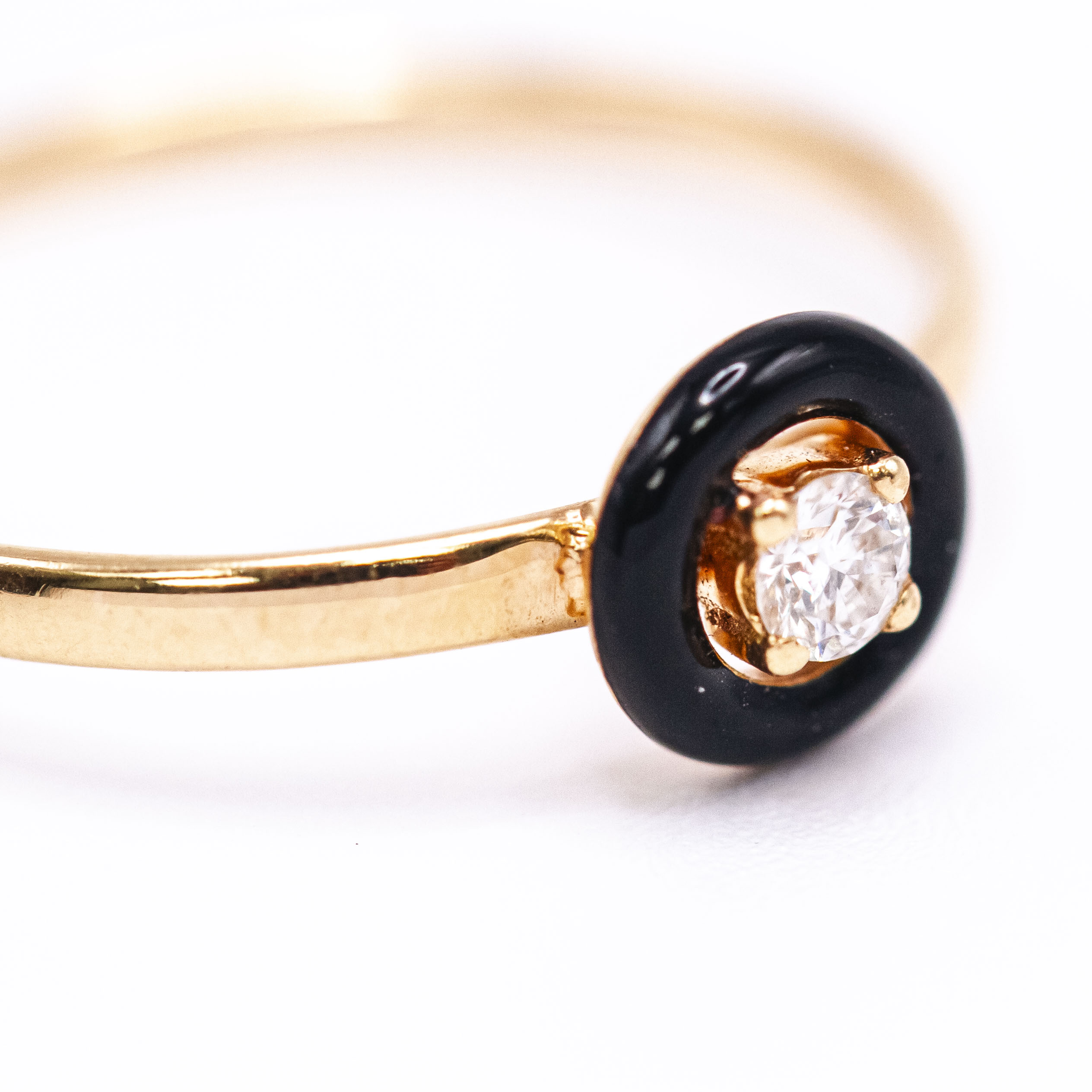Anillo solitario de Diamante en Oro Amarillo y esmalte negro