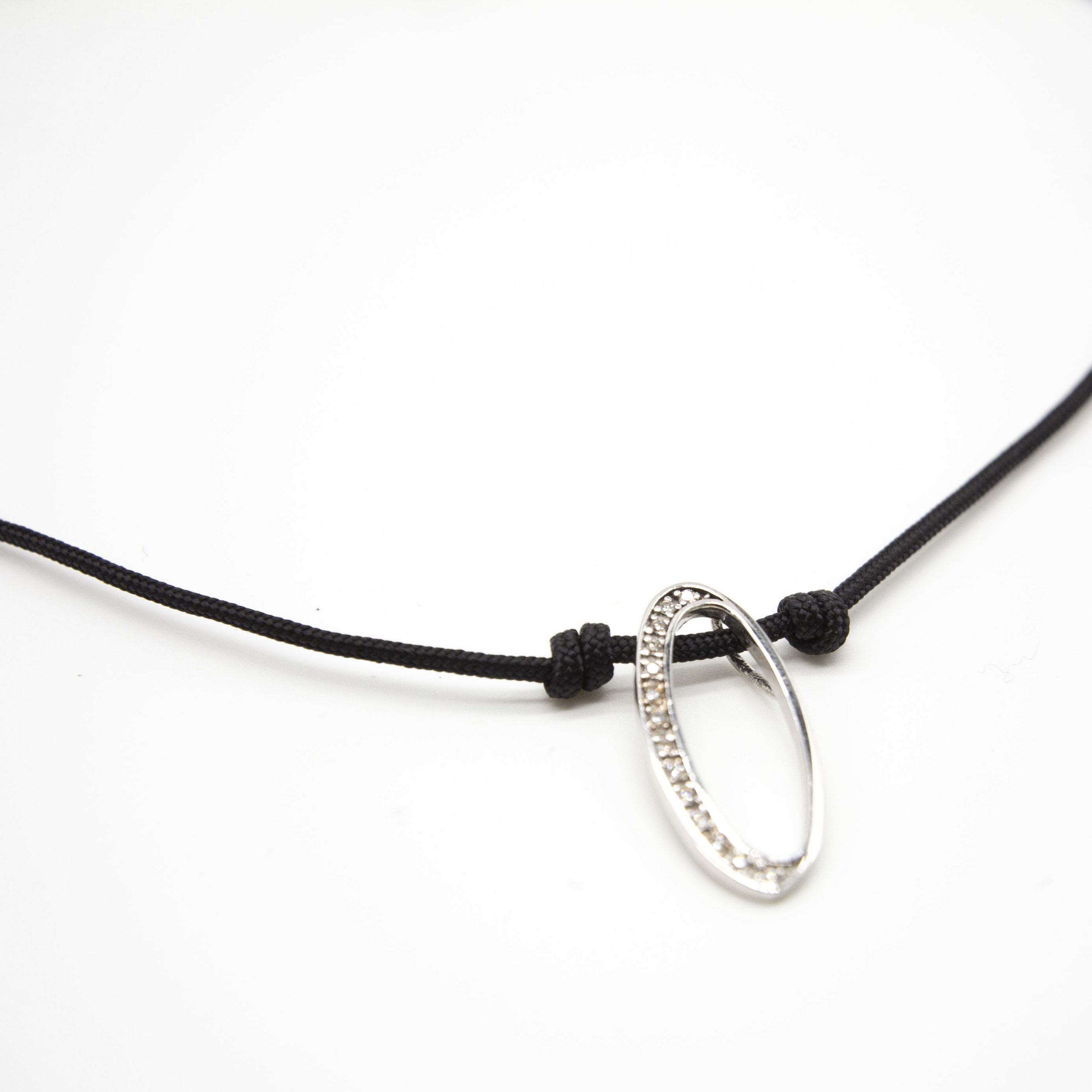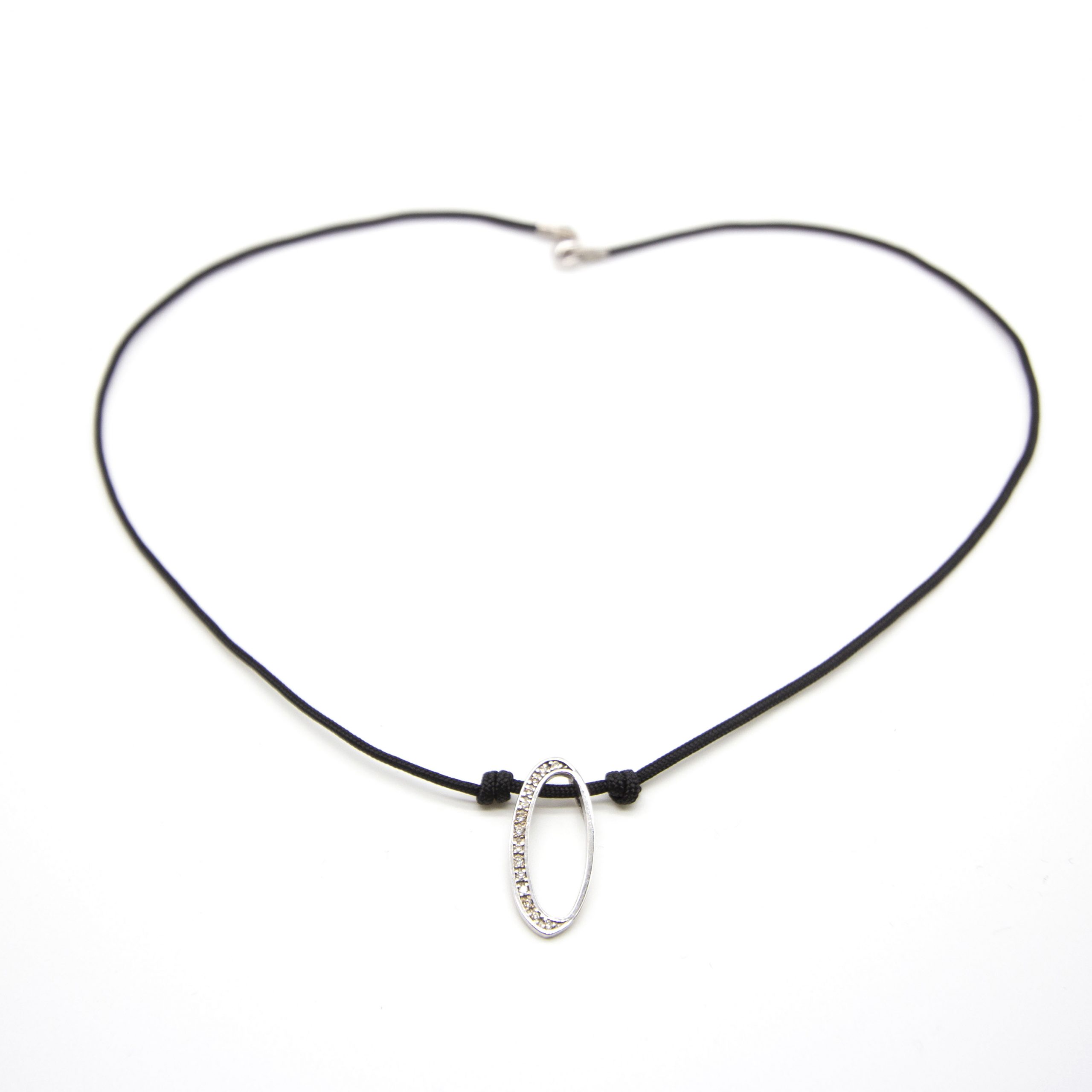 Collar de Oro Blanco con cordón para mujer | 14x Diamantes en talla Brillante | Oro Blanco 18K | 1,78 gramos. | Cierre mosquetón | Medidas: 39,5 cm de longitud | Producto nuevo a estrenar. Ref : UKD363862SO