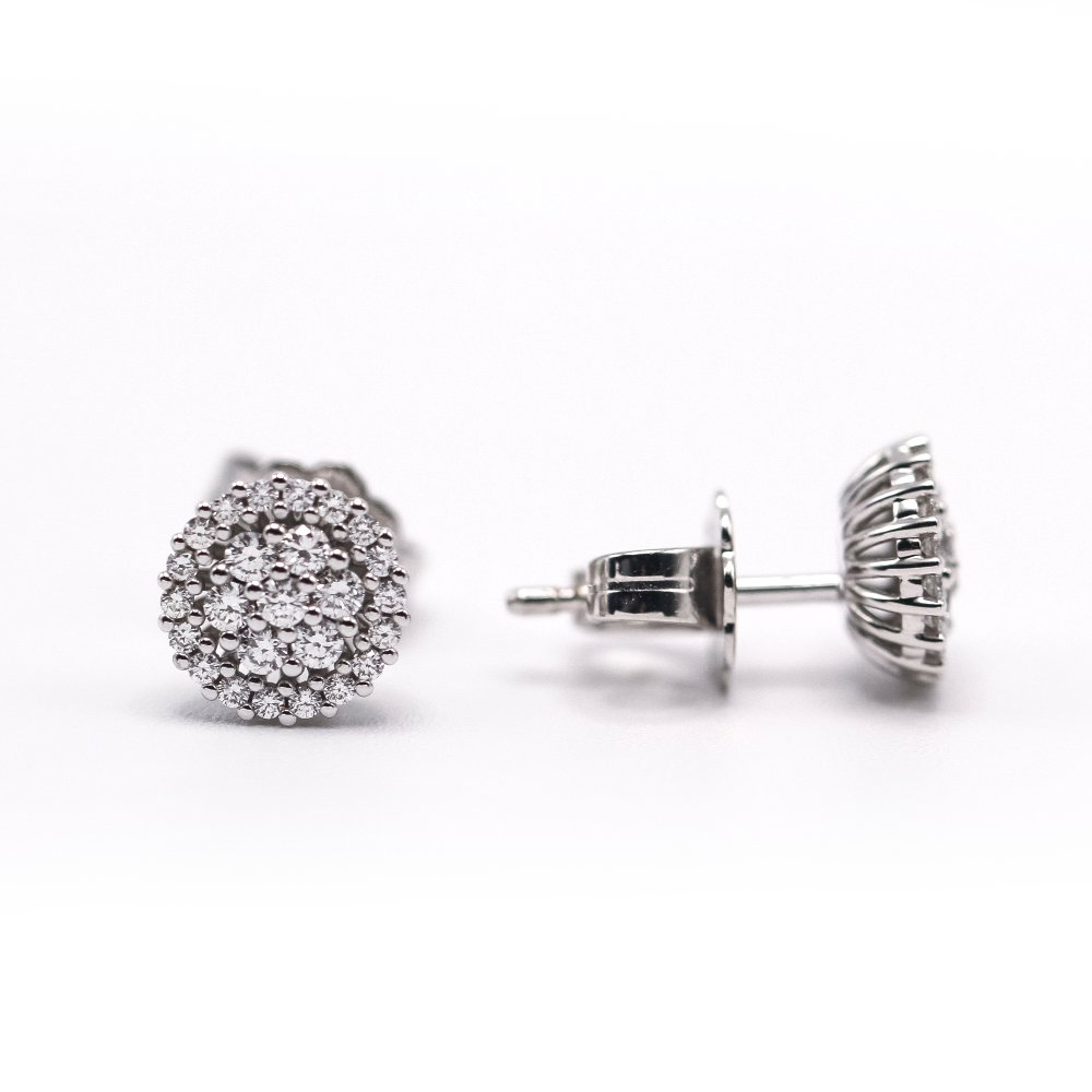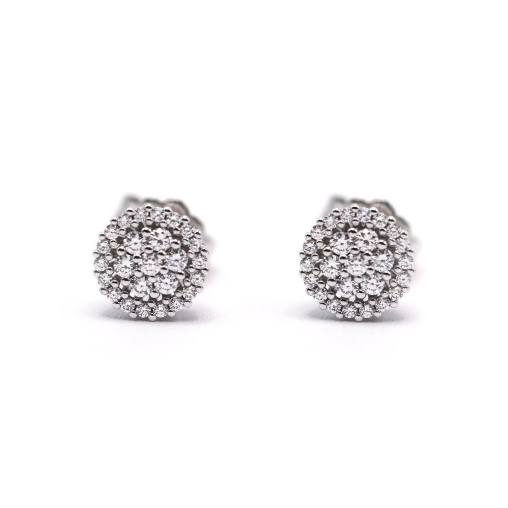 Pendientes de Oro y Diamantes para mujer | 50x Diamantes naturales en talla brillante con peso total 0,35 cts., calidad GH/Vs | Cierre presión | Oro Blanco 18K. | 2,15 gramos. | Medidas: 8mm de diámetro | Articulo nuevo a estrenar solo disponible en la web. | Ref. UKA000105LF