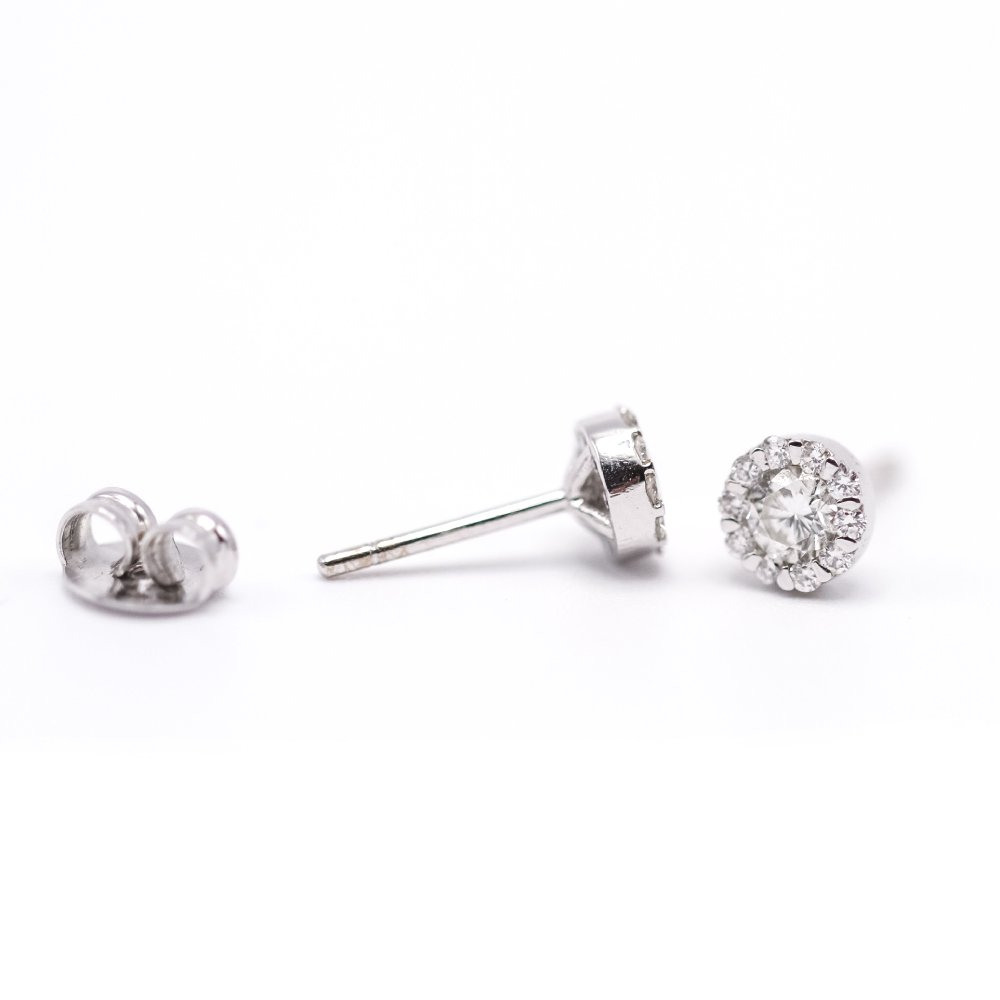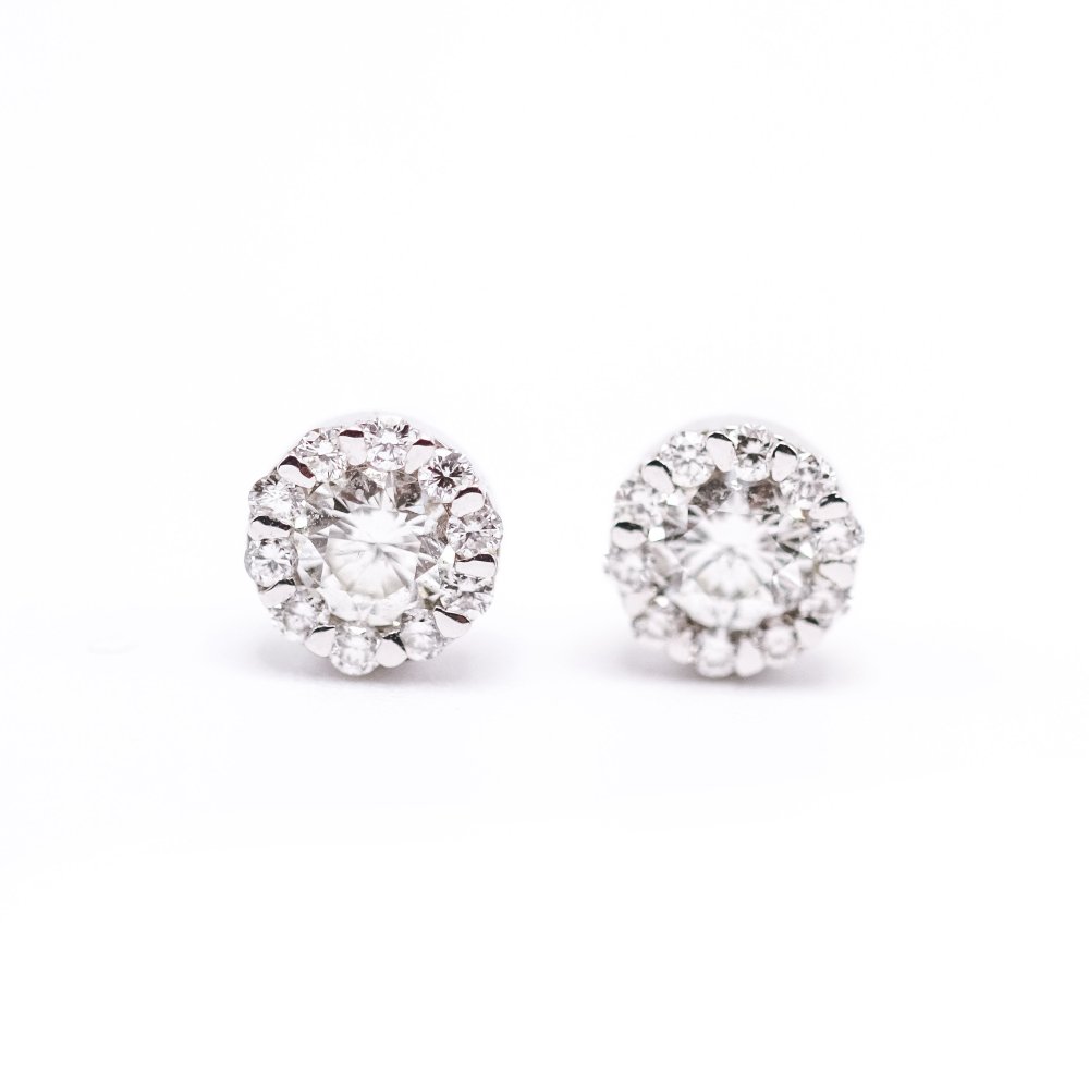 Pendientes unisex en Oro y Diamantes | Diamantes naturales en talla brillante con peso total 0,54 cts., calidad GH/Vs | Cierre presión | Oro blanco 18 K. | 1,80 gramos. | Medidas: 6mm diámetro | Articulo nuevo a estrenar solo disponible en la web. | Ref. UKA000090FV