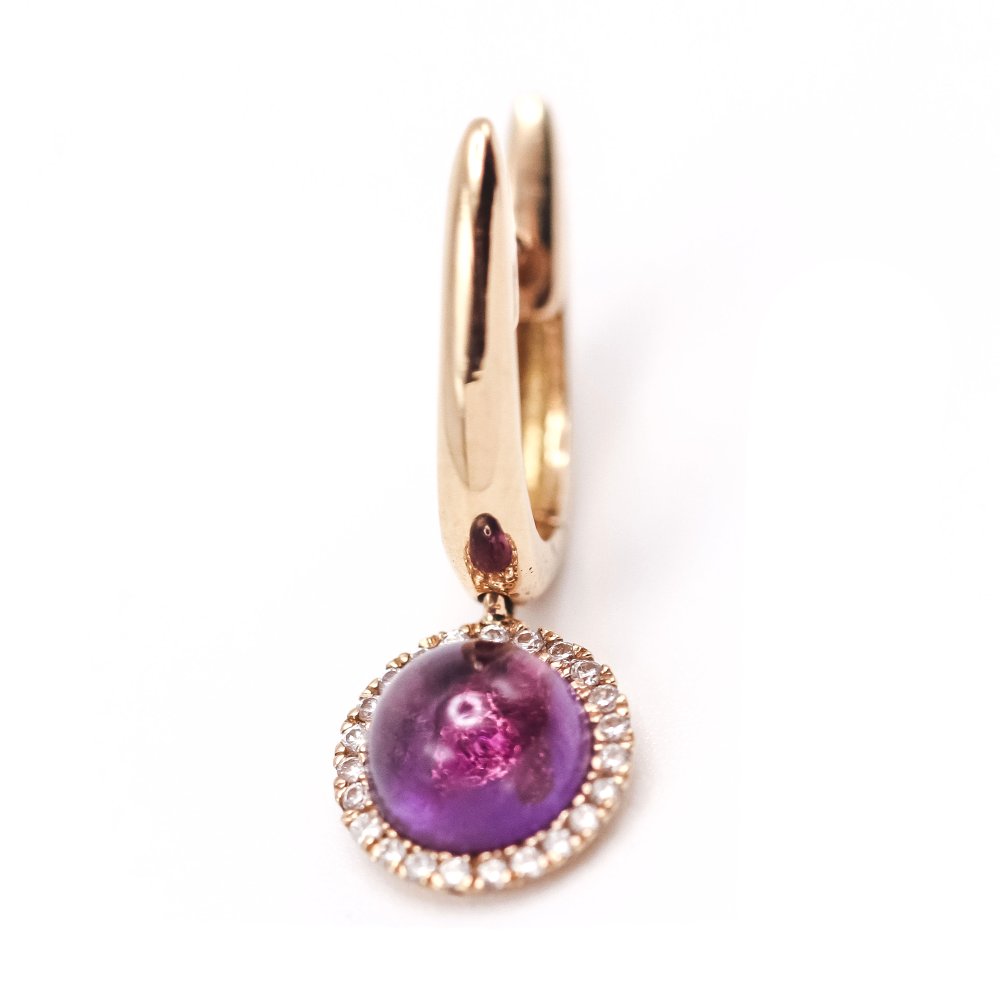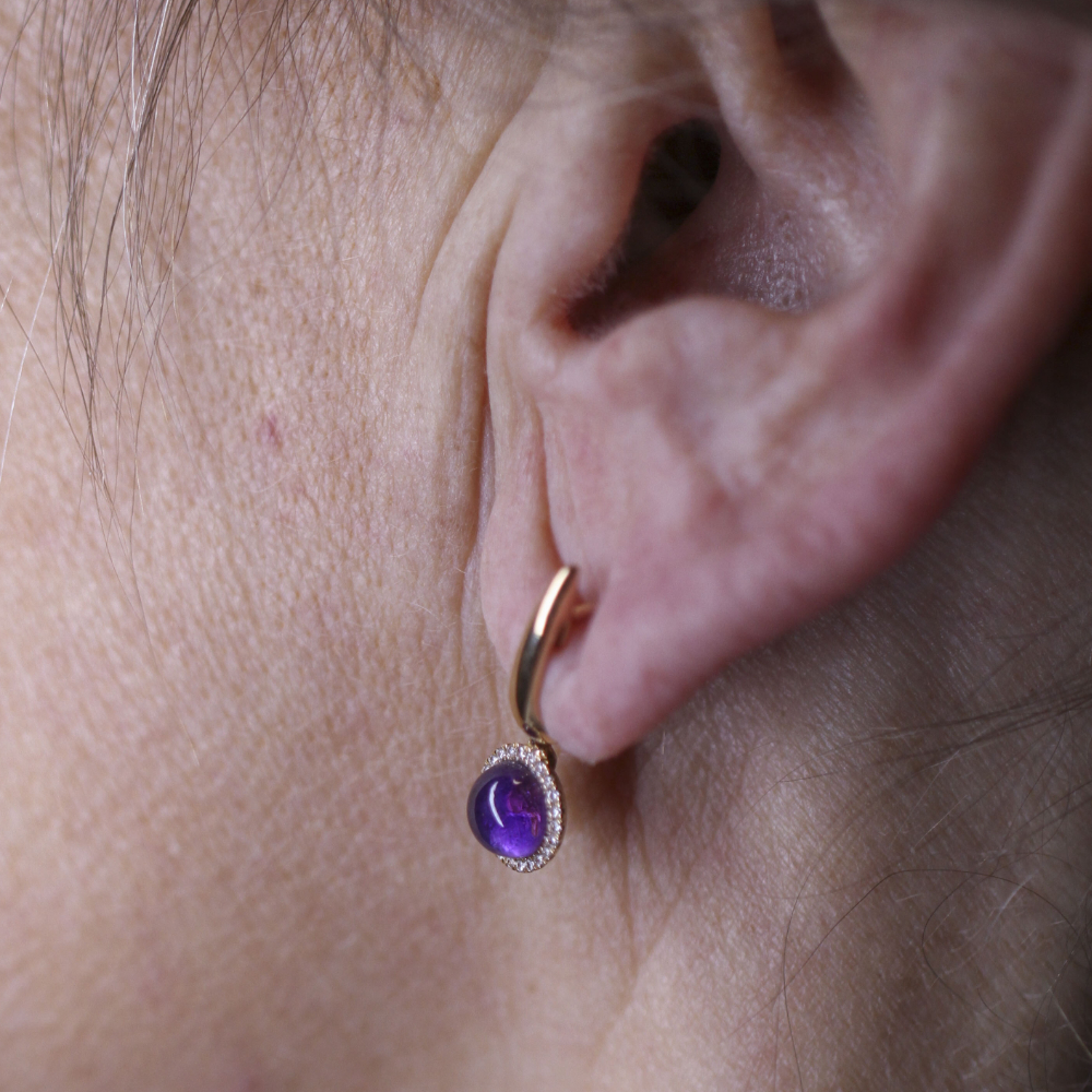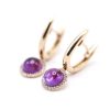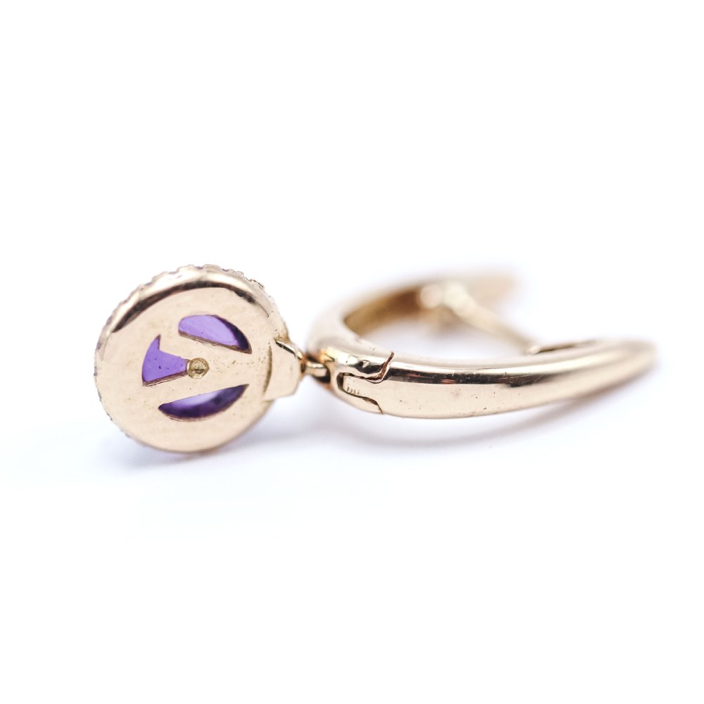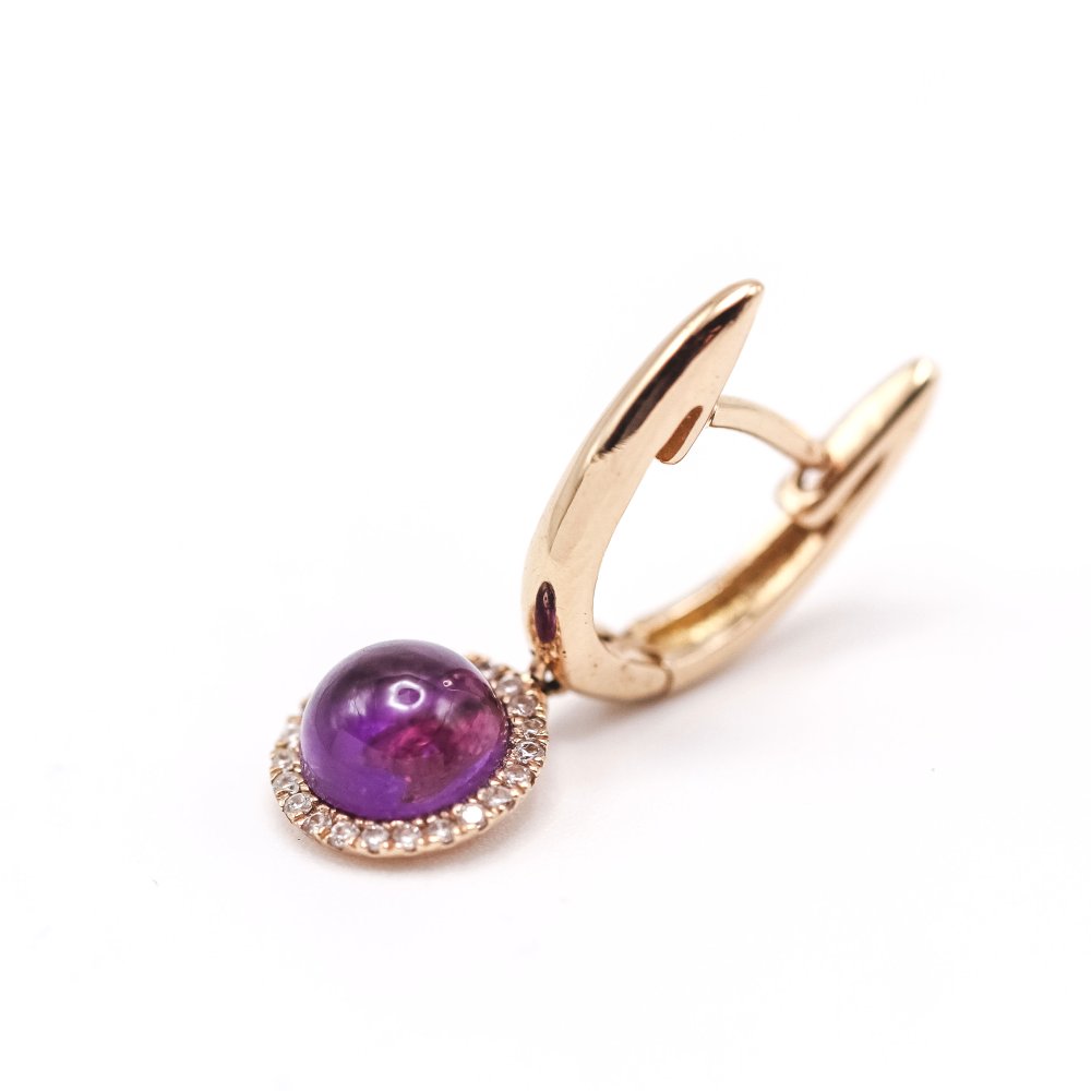 Pendientes de mujer | Diamantes naturales en talla brillante con peso total  0,15 cts., calidad GH/Vs y 2x Amatistas en talla cabujón | Cierre Clip | Oro Amarillo 18 K. | 3,61 gramos. | Medidas: 2 cm de largo  | Articulo nuevo a estrenar solo disponible en la web. | Ref. UKA000092FV