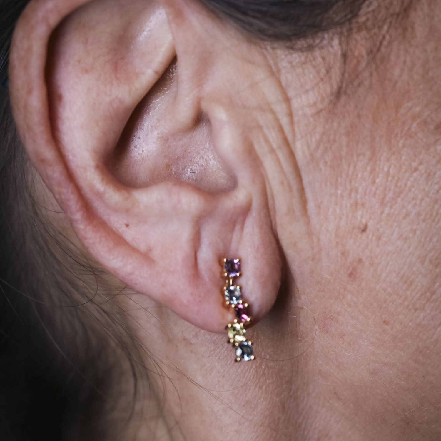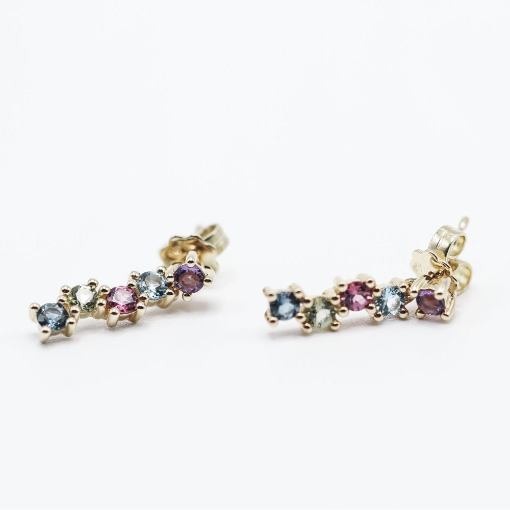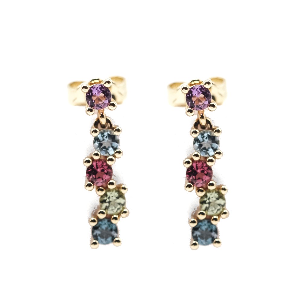 Pendientes de Oro para mujer | 10x gemas naturales : Peridotos, Citrinos, Amatistas, Rodolitas y Topacios de 3mm cada una, con peso total 0,80ct | Cierre clip | Oro Amarillo 18K. | 3,50 gramos. | Medidas: Largo 2cm | Articulo nuevo a estrenar solo disponible en la web. | Ref. UKA000104LF
