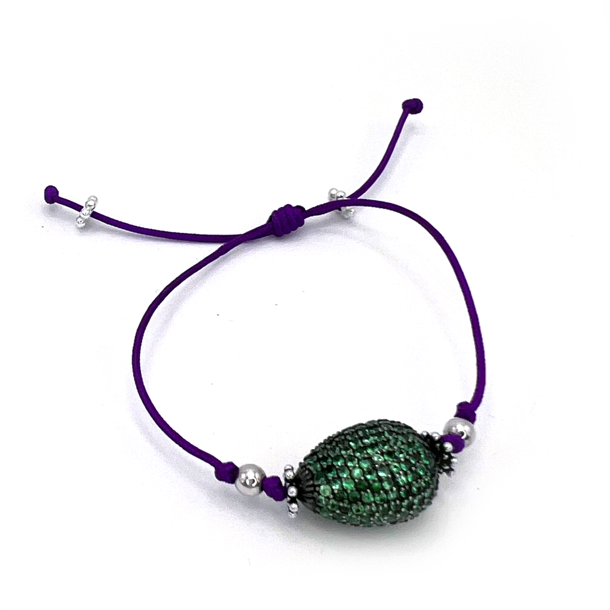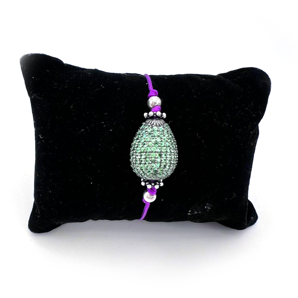 Pulsera Tzavotita Unisex | Tzavoritas verdes de Tanzania engastado en pavee | Plata 925/- | 5,91 gramos | Cierre corredero en cordón de seda lila con terminaciones en plata | Medidas : Largo parte central 3,5cm | Producto nuevo a estrenar solo disponible en la web | Ref: UKA000080GM