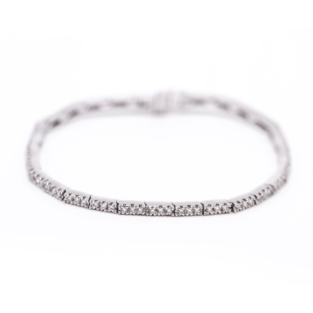 Pulsera tipo Rivire de Oro para mujer | 85x Diamantes talla brillante con peso 1,07ct G/Vs | Oro Blanco 18K | 14,30 gramos | 17cm de largo y 2mm de ancho | Cierre cajón con lengüeta de seguridad | Articulo nuevo a estrenar solo disponible en la web | Ref. UKA000108LF